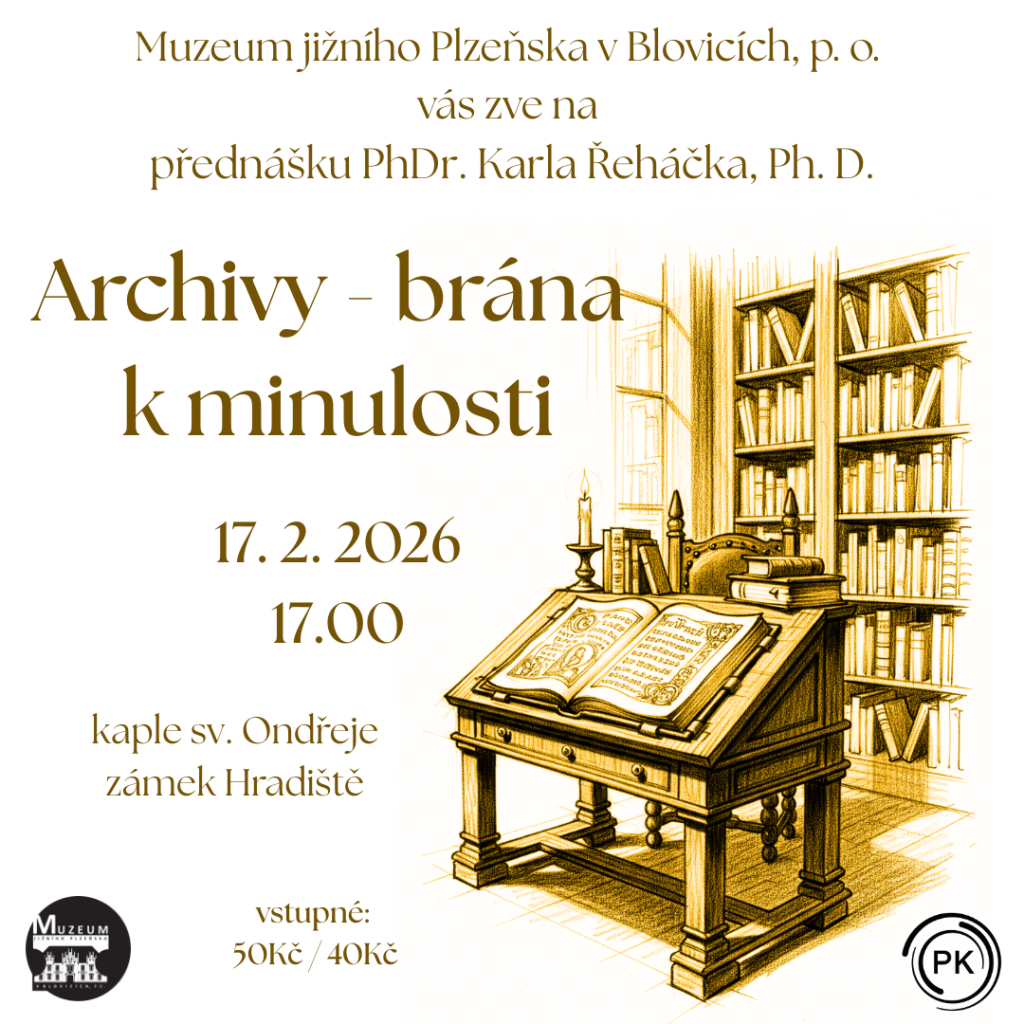 Archivy představují pojítko mezi minulostí a budoucností. Pečují o historické dokumenty, jež jsou však významné i pro dnešek. To dokládá trvalý zájem o ně, nejen ze strany ostatních úřadů a institucí, ale také jednotlivých občanů, laiků i odborníků. Ad fontes, tedy k pramenům, je jeden z klíčových principů svobodného lidského poznávání. A archivy takových pramenů shromažďují desítky, někdy i stovky kilometrů. Některé jsou již přístupné dálkovým způsobem, kvůli jiným musí zájemce stále ještě vážit cestu do archivů a jejich badatelen. Přednáška ředitele Státního oblastního archivu v Plzni seznámí veřejnost s archivy jako paměťovými institucemi, s poklady, které ve svých depozitářích skrývají, a s klasickými i moderními možnostmi jejich zpřístupňování a využití. Přijměte tedy pozvání k výletu do minulosti, do reality archivní současnosti i k velkolepým budoucím vizím a plánům!