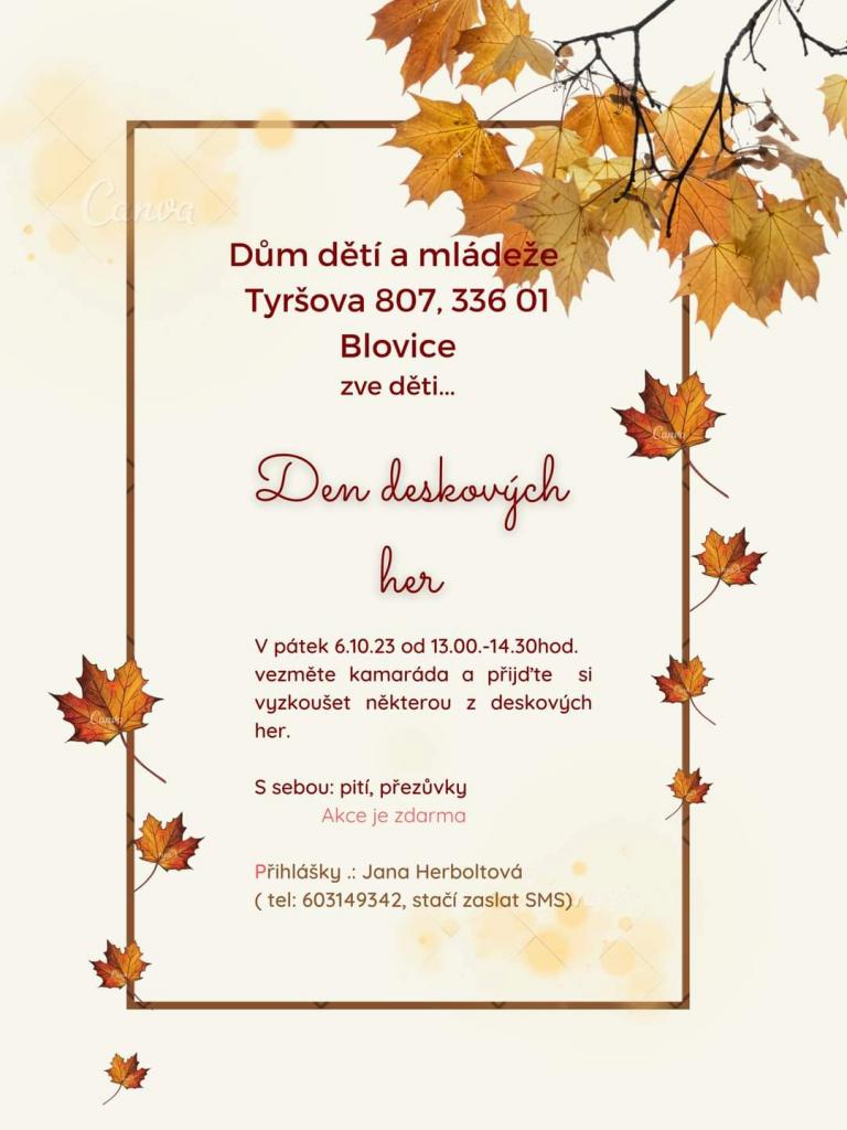 Místo konání: Dům dětí a mládeže, Tyršova 807, Blovice, 33601