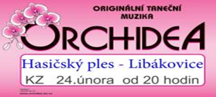 Libákovičtí hasiči Vás srdečně zvou na Hasičský ples do Libákovic, tentokrát se skupinou Orchidea, a to v sobotu 24. 2. 2024 od 20:00 hodin.
