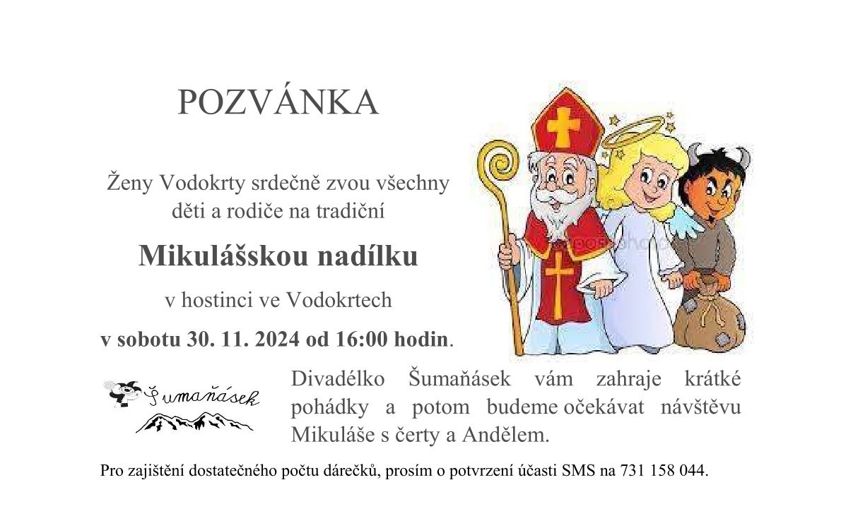 plakát V sobotu 30.11.2024 se koná v KZ Vodokrty tradiční Mikulášská nadílka.