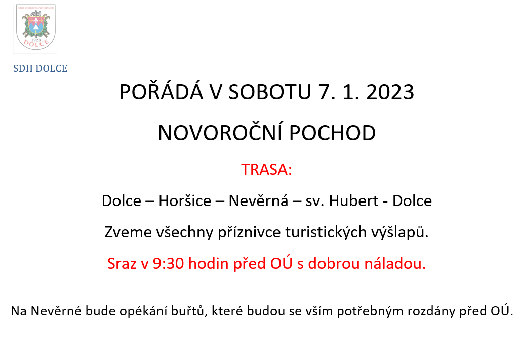 Místo konání: Obec Dolce-sraz před budovou OÚ, Dolce čp. 100, Dolce