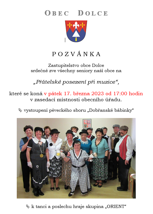 Místo konání: Zasedací místnost obecního úřadu, Dolce čp. 100, Dolce