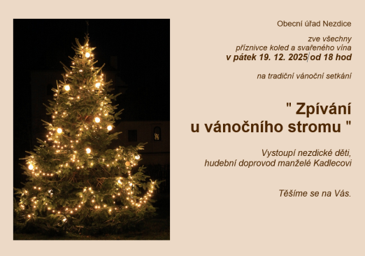 Zpívání u vánočního stromu - v pátek 19. prosince 2025